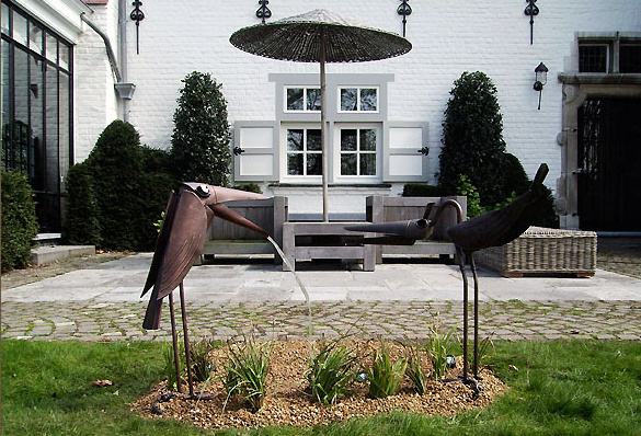 Vítejte ve světě fontán, které na sebe berou podobu měděných ptáků. Unikátní design se tu snoubí s jednoduchým časem prověřeným technickým řešením. Jedná se o ruční uměleckou kusovou výrobu, kde výchozím materiálem je "věkuodolný" měděný plech tloušťky 0,6 nebo 0,8 mm. Standardně nabízení ptáci jsou vysocí 40 cm až 85 cm. Na zakázku je možno zhotovit kus až 120 cm. Každá fontána je pak číslovaným originálem.